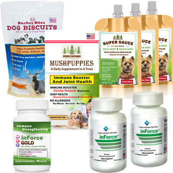 2 inForce, 1 bottle of inForce Plus, 1 MushPuppies, 1 Special Sauce for Dogs 3pk, 1 Buckey Bicuits. See individual items for details. $198.94 if sold separately.